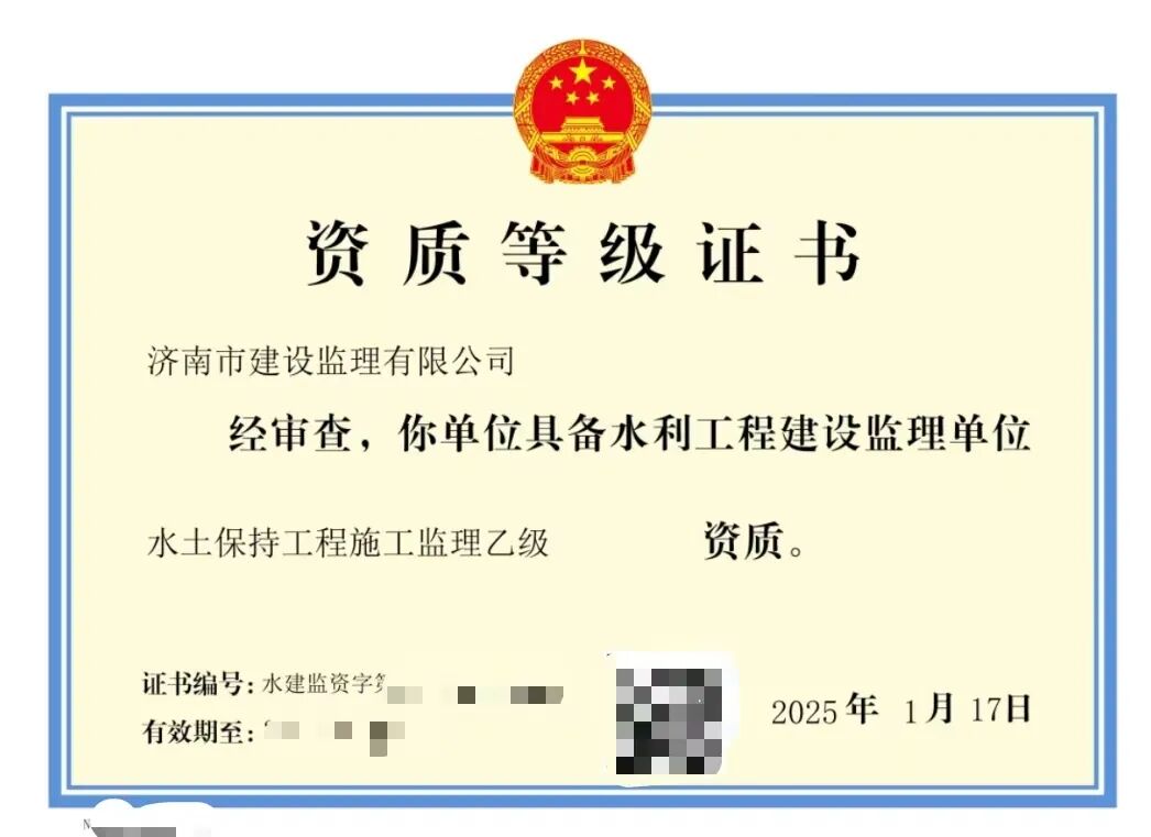 熱烈祝賀濟(jì)南監(jiān)理取得兩項(xiàng)水利工程建設(shè)監(jiān)理資質(zhì)