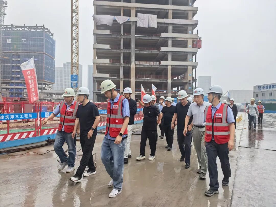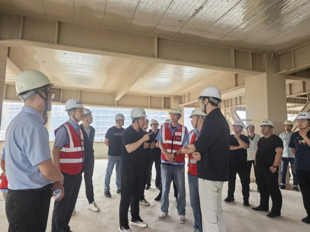 隨后,在總監(jiān)的帶領(lǐng)下,全體人員觀摩了項(xiàng)目現(xiàn)場(chǎng)。由總監(jiān)、各位監(jiān)理工程師向大家講解該項(xiàng)目鋼結(jié)構(gòu)施工過程和控制要點(diǎn),大家針對(duì)本項(xiàng)目的鋼結(jié)構(gòu)柱芯混凝土頂升法澆筑施工工藝展開熱烈的討論。